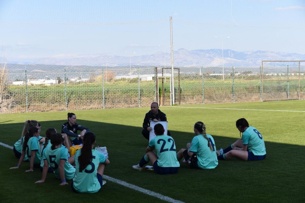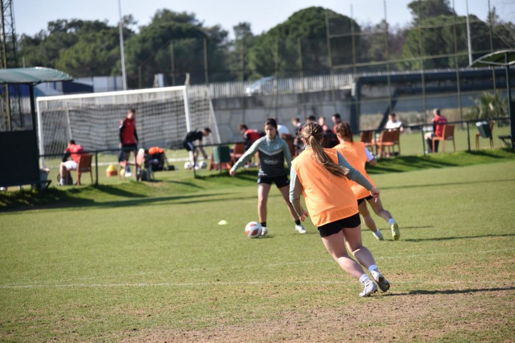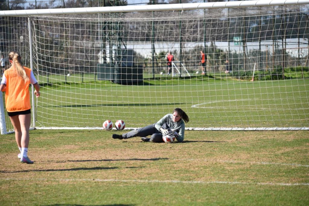 Bereits gestern Abend wurden in zwei kreativen Gruppen Freistoss- und Eckballvarianten ausgeklügelt. In der dritten Trainingseinheit wurden eben diese auf die Probe gestellt. Trotz frühlingshafter Temperaturen bestand S.Bus. darauf, in der Winterjacke zu trainieren, was dem Trainier missfiel. Auch heute durfte die Kneippeinheit nicht fehlen. Noch gestern bluffte V.D., heute in das kühle Nass zu springen. Spoiler: Höchstens seine Zehen „dunkte“ er für wenige Sekunden im Pool. Einige Spielerinnen demonstrierten ihm eindrücklich, dass vollständiges Eintauchen durchaus möglich ist.